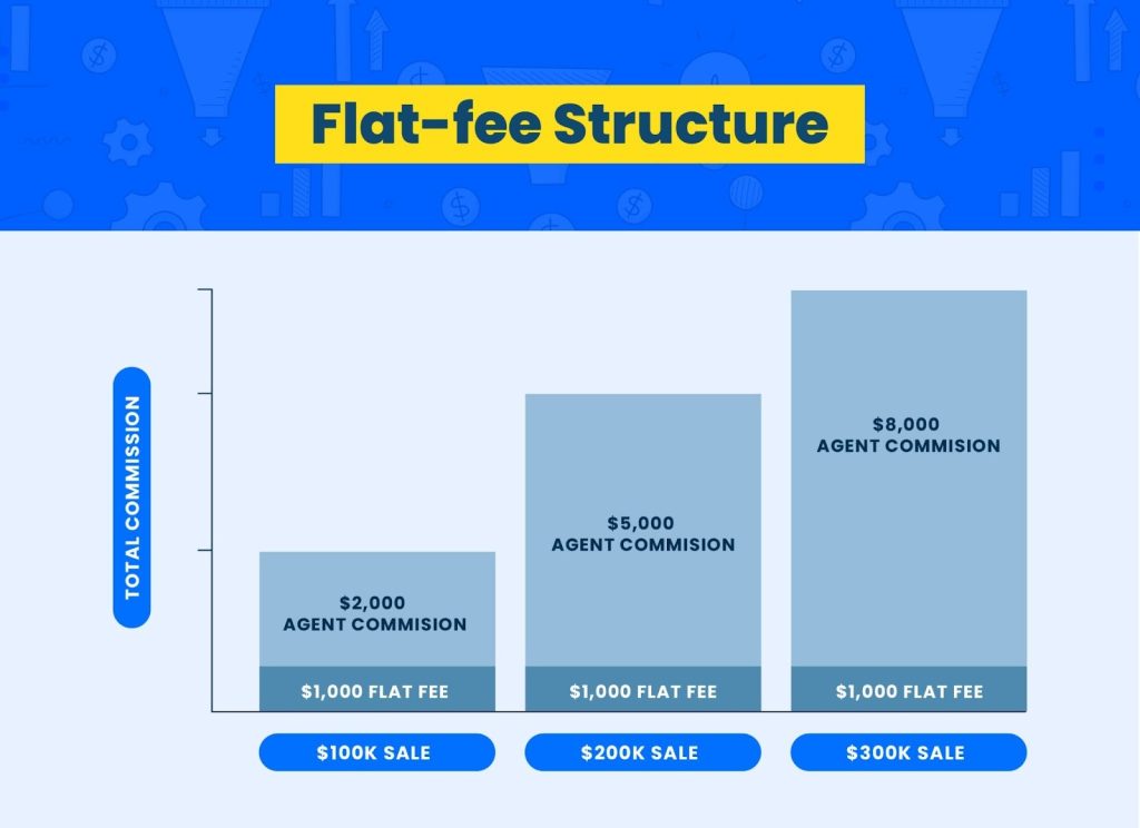 In a flat-fee structure, the agent keeps 100% of the commission but pays a regular flat fee to the brokerage. This fee, often called a desk fee, is paid monthly or per transaction. It allows the agent to use the brokerage’s office and other infrastructure.