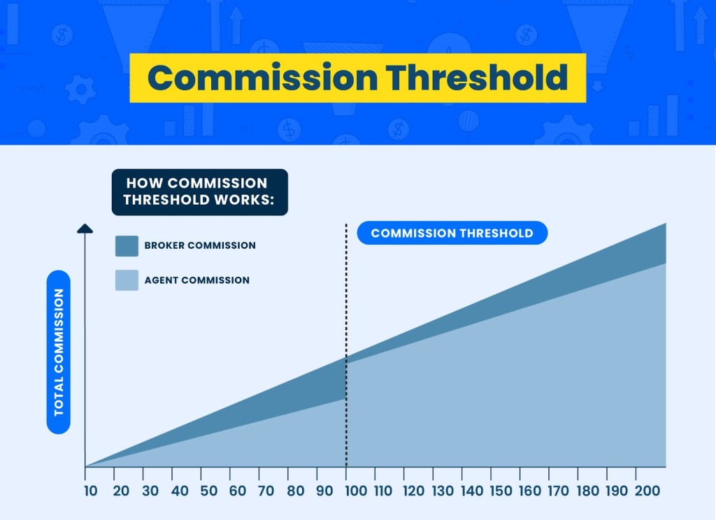 A commission threshold is similar to a traditional split. The difference is that the percentage the agent pays to the broker reduces once they pass a monthly sales target.