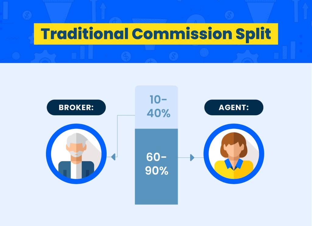 A traditional commission split sees the total commission divided between the agent and the broker-owner.